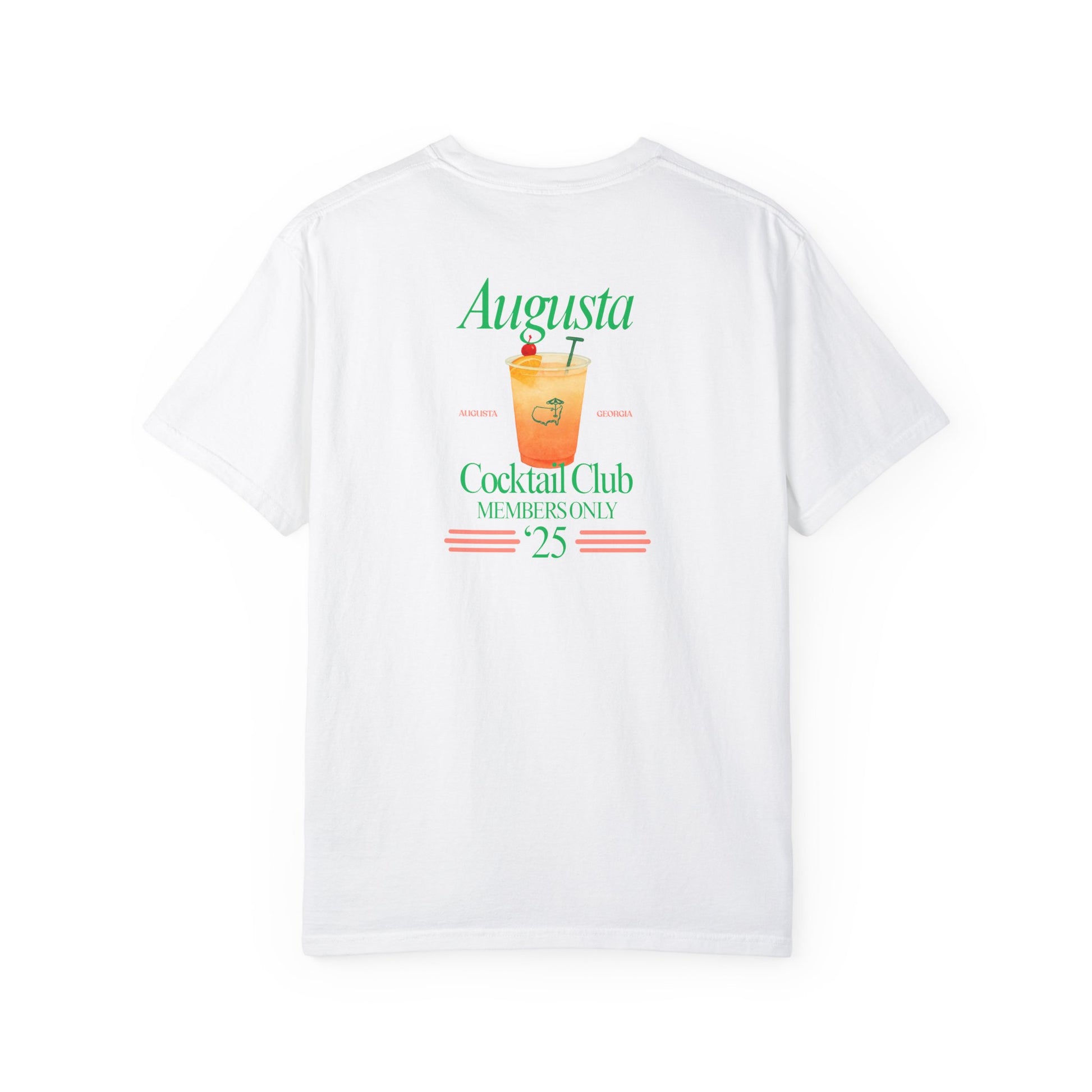 Meet the Augusta Cocktail Club Tee—an ode to the unofficial drink of spring, the azalea cocktail. The kind you'd sip under Georgia pines with the sun low and the leaderboard tight.